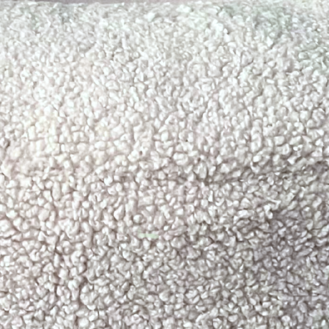 Rond, omsluitend en zacht. De luxe bouclé stof voelt warm en rijk aan. Ultieme geborgenheid.