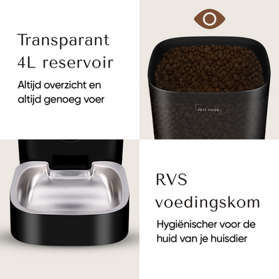 De Pets Pride voerautomaat is voorzien van een RVS voederkom. Door de RVS kom zijn huidreacties verleden tijd en zorg je extra goed voor de huid van jouw huisdier. En dat is niet het enige: Dit duurzame materiaal is makkelijk schoon te houden en gaat ook nog eens lang mee!